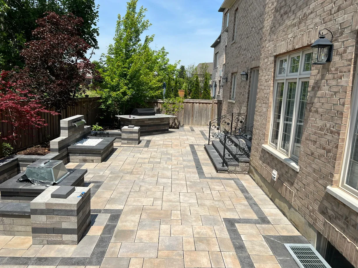 Designing and enhancing outdoor spaces, whether in the front yard or backyard, significantly boosts both the aesthetics and value of a property. Elements such as interlock driveways, retaining walls, luxury steps, and decorative flowerboxes create a welcoming and elegant entrance. In the backyard, a combination of large stone slabs with artificial grass, a cozy fire pit or fireplace, a modern barbecue area, and natural stone features like pool coping and armor stone can transform the space into a stylish and functional retreat. Adding lush greenery, triple mix, and mulch completes the look, ensuring a balanced and visually appealing outdoor environment.